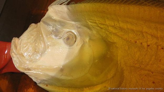 Direito de imagemNATIONAL HISTORY MUSEUM LA COUNTYImage captionAté recentemente, cientistas só tinham acesso a espécimes conservados de peixe-remo